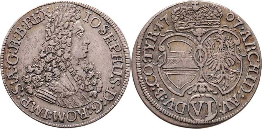 VI Krejcar 1707, Hall-Fenner, M-A.206, 2.941g, nep.vady mater., nep.exc., pěkná patina