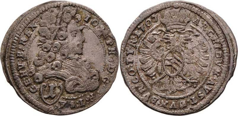 Krejcar 1707, Vídeň, M-A.206, 0.939g, nep.nedor., pěkná patina R!