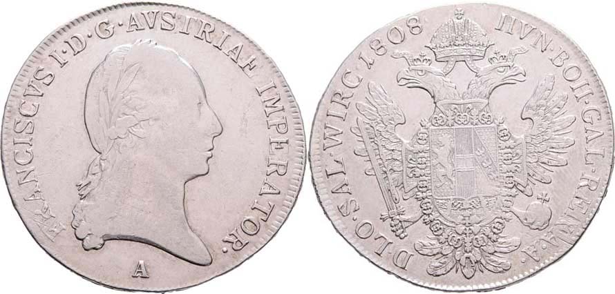 1/2 Tolar konvenční 1808 A, Vídeň, 13.917g, mírně just., nep.hr., dr.rysky RR!
