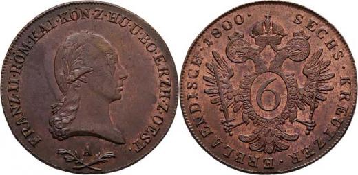 Cu 6 Krejcar 1800 A, Vídeň, 14.054g, dr.vady materiálu, pěkná patina