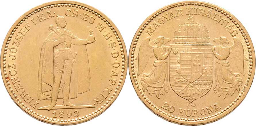 20 Koruna 1893 KB, 6.765g, nep.hr., nep.rysky