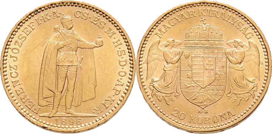 20 Koruna 1896 KB, 6.770g, nep.hr., nep.rysky, téměř