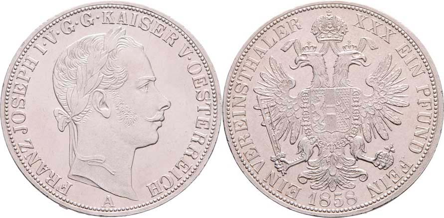 Tolar spolkový 1858 A, 18.485g, nep.hr., nep.rysky v aversu, téměř