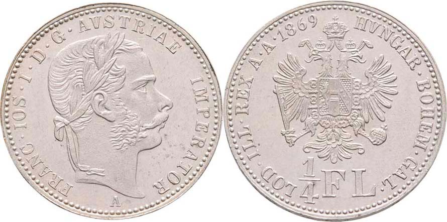 1/4 Zlatník 1869 A, 5.355g, nep.hr., nep.rysky, patina RR!