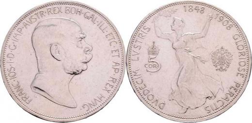5 Koruna 1908 - jubilejní, 23.982g, nep.hr., nep.rysky, téměř