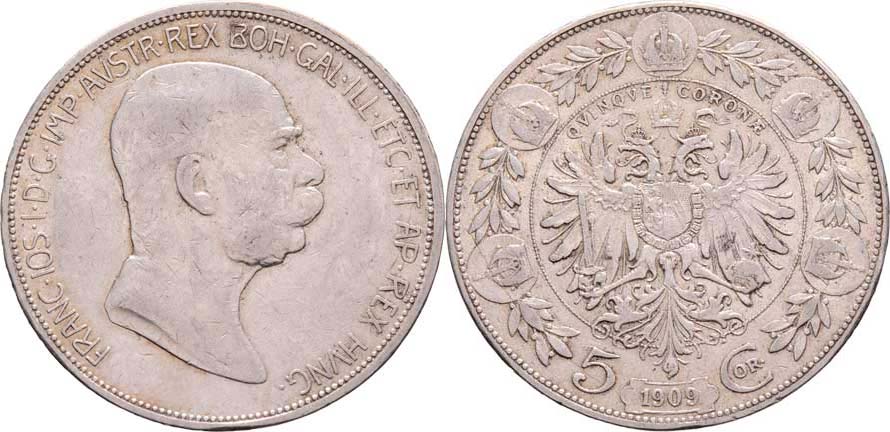 5 Koruna 1909 - Marschall, 23.885g, dr.hr., dr.rysky, patina