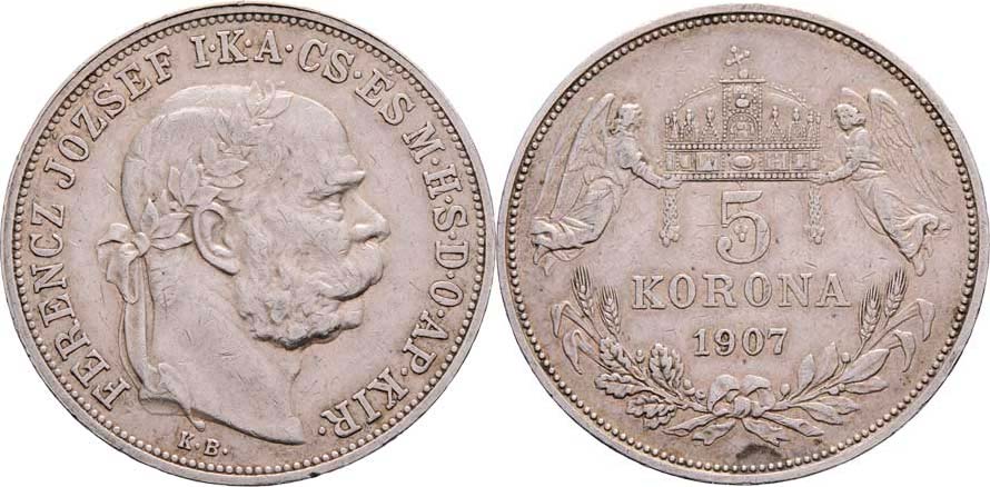 5 Koruna 1907 KB, 23.964g, dr.hr., dr.rysky, patina