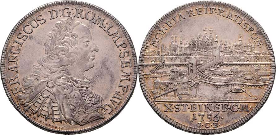Tolar 1756 ICB - s portrétem Františka I. a pohledem na město, KM.372, Dav.2618, 28.052g, nep.hr., dr.rysky, pěkná tmavá patina