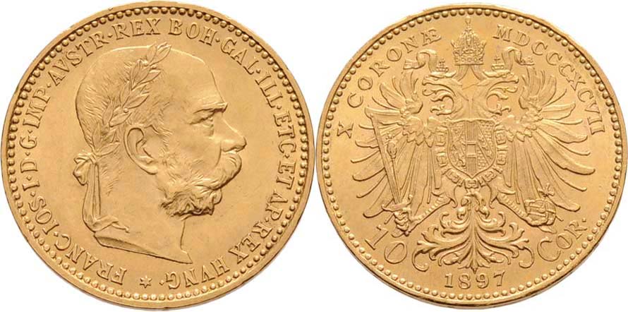 10 Koruna 1897, 3.383g, nep.hr., nep.rysky, pěkná patina, téměř