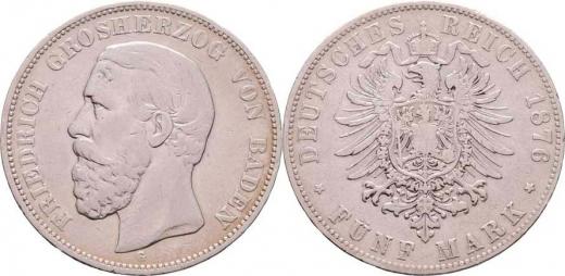 5 Marka 1876 G, KM.263.1 (Ag900), 27.449g, dr.hr., dr.rysky