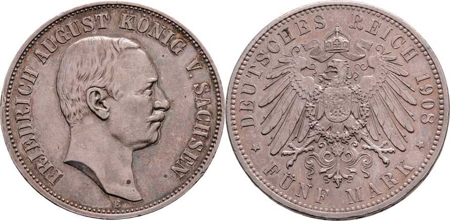 5 Marka 1908 E, KM.1266 (Ag900), 27.761g, nep.hr., nep.rysky, pěkná patina