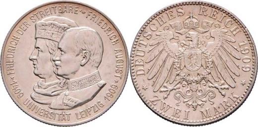 2 Marka 1909 - Universita Lipsko, KM.1268 (Ag800), 11.068g, nep.hr., nep.rysky, pěkná patina