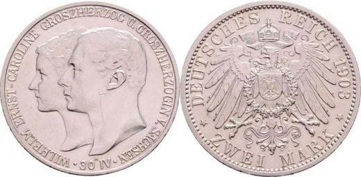 2 Marka 1903 - svatební, Y.172 (Ag900, pouze 40.000 ks), 11.120g, nep.hr., dr.rysky R!