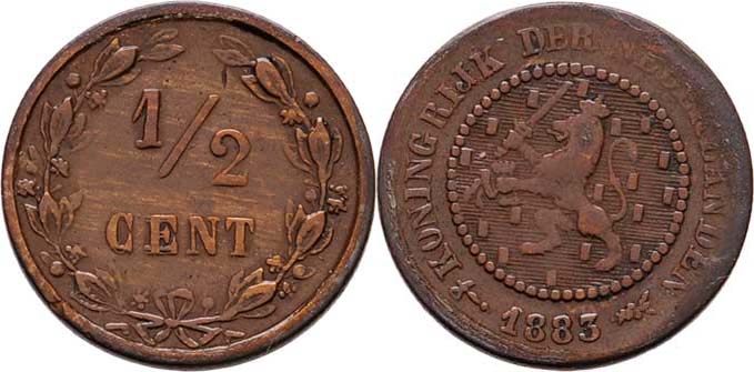 1/2 Cent 1883, KM.109 (bronz), 1.218g, nep.rysky, pěkná patina, lakovaný RR!