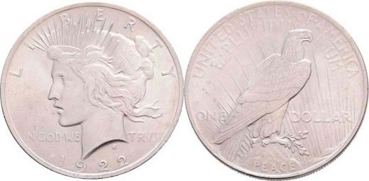 Dolar 1922 - Mírový, KM.150 (Ag900), 26.722g, nep.hr., nep.rysky, pěkná patina, téměř