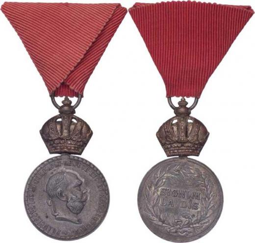 Signum Laudis - náhradní kov (zinek) - uherský typ portrétu, zlacená koruna, podob. jako VM.29-II-B, Marko.148cd, nepůvodní vybledlá mírová stuha