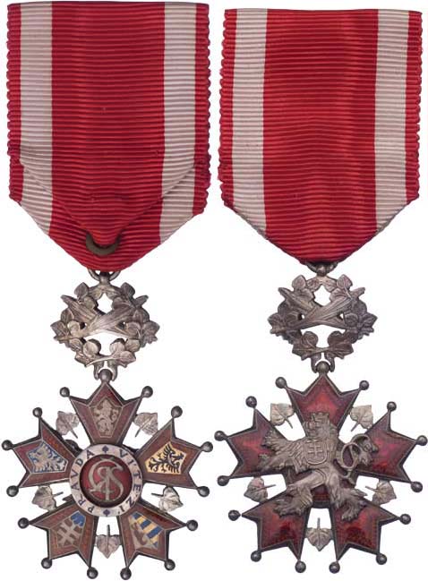 Řád Bílého lva - civilní skupina - 5.třída, VM.9-b-E, závěs s palmovými ratolestmi, vydání do roku 1960, původní stuha