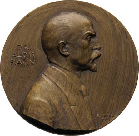Dr.Alois Rašín 1917 - poprsí zprava, 3-řádkový nápis, Sign., pat.jednostr.bronz 54 mm, MZČ.216/11, dr.rysky