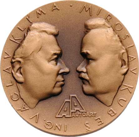 Ing.V.Klíma a M.Kubeš - 10 let společnosti Autoart 2000 - dva portréty, emblém, opis / emblémy, znaky, opis, Sign., patin. bronz 40mm, 27.891g, etue, text