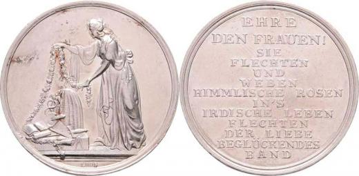 Ctít ženy které splétají nebeské růže (medaile úcty k ženě) b.l. - žena zdobí úl růžemi / 13-řádkový nápis, Sign., Nepunc., Ag 36mm, 13.079g, nep.hr.,rys.