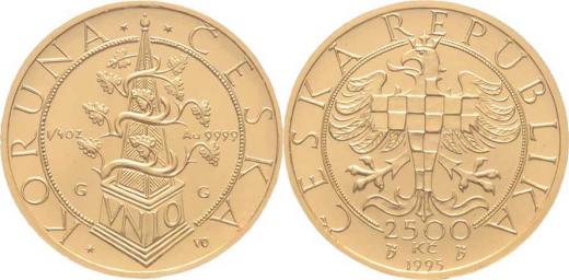 2500 Koruna 1995 - mince Moravských stavů, KM.19 (Au999, 7.77g, pouze 2.000ks), kapsle, etue