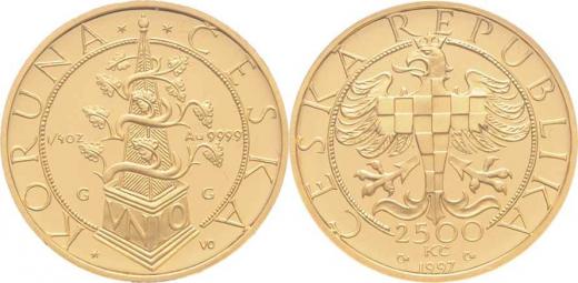 2500 Koruna 1997 - mince Moravských stavů, KM.19 (Au999, 7.77g, pouze 3.000ks), kapsle, etue