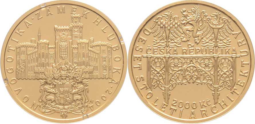 2000 Koruna 2004 - Zámek Hluboká, KM.75 (Au999, 6.22g, pouze 1.994 ks), kapsle, etue