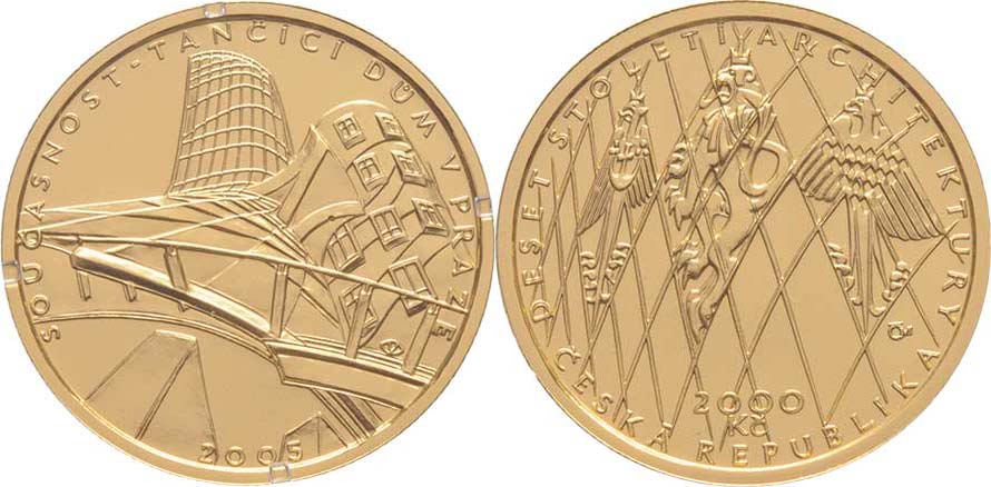 2000 Koruna 2005 - Tančící dům v Praze, KM.88 (Au999, 6.22g, pouze 1.996 ks), kapsle, etue, karta