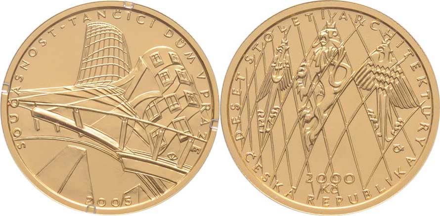 2000 Koruna 2005 - Tančící dům v Praze, KM.88 (Au999, 6.22g, pouze 1.996 ks), kapsle, etue, karta