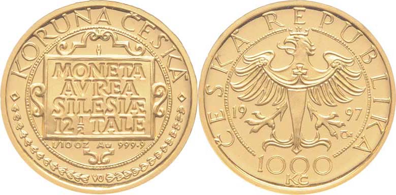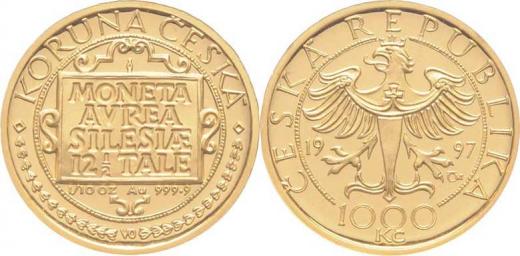 1000 Koruna 1997 - mince slezských stavů, KM.18 (Au999, 3.11g, pouze 2.250 ks), kapsle, etue
