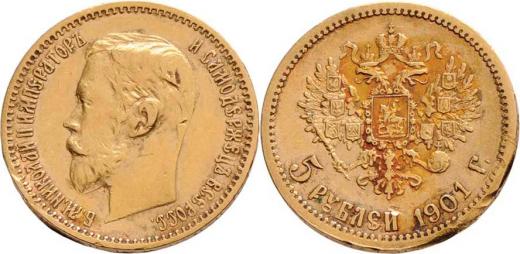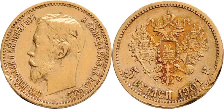 5 Rubl 1898 AG, 1901 FZ, Petrohrad, Y.62 (Au900), 4.254g, 4.288g, hrany, dr.rysky, prohnutý, patina 2ks