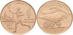 Sada pamět. mincí 1995 - LOH Atlanta 1996 - 5 Dolar (Au900), 2x 1 Dolar (Ag900), 1/2 Dolar (CuNi/Cu), KM.257,259,260,261, 4x kapsle, společná etue, přebal