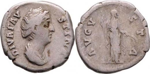 AR Denár, Rv:"AVGVSTA.", stojící Ceres, RIC.359, S.1250 - mincovna Řím - posmrtná ražba po roce 141, nepravidelný okraj střížku, patina