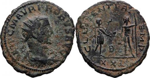 AE Antoninianus, Rv:"CLEMENTIA.TEMP.", stojící císař a Jupiter, S.3243, RIC.921 - mincovna Antiochia 2.dílna - blíže nedatován, exc., mírně kor., patina