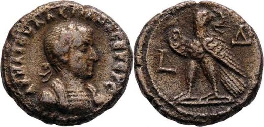 Bil.tetradrachma, rok 4 (= 256/257), sedící orel zleva, podobná jako SGI.4511, K-G.88/23, Dat.5184, För.1028-32, 8.973g, nepravidelný okraj, pěkná patina