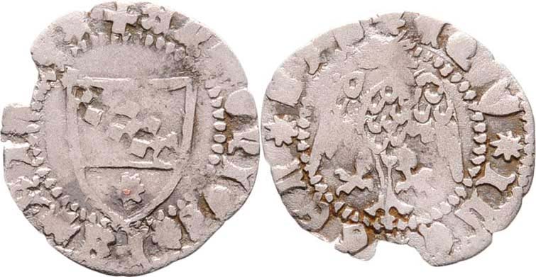 AR Denár b.l., De Wit.III.3672, Biaggi.191, FW.2540, 0.652g, nep.nedor., vylomený okraj, pěkná patina
