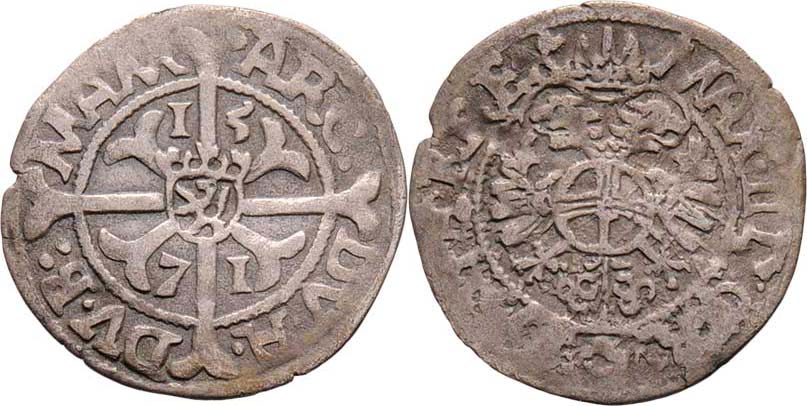 Krejcar 1571, Praha-Harder, J.2d, MKČ.183a, 0.696g, zvlněný, nedor., pěkná patina