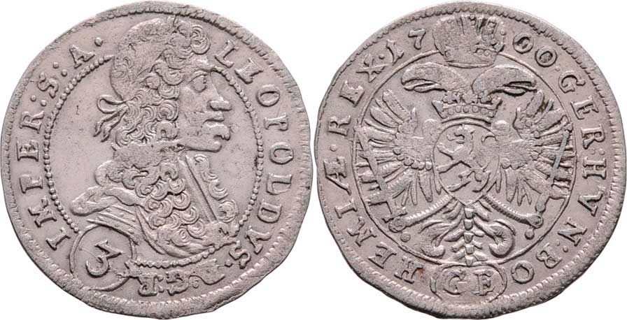 3 Krejcar 1700 GE, Praha-Egerer, MKČ.1429, Nech.213, 1.594g, nep.vady razidla, pěkná patina