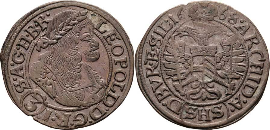 3 Krejcar 1668 SHS, Vratislav-Hammerschmidt, dělení opisů: "LEOPOLD.D.G.R.I.(3).../ARCHID.A.(SHS)D.BVR.", MKČ.1619, Nech.738, 1.566g, nep.nedor., pěkná pat. R!