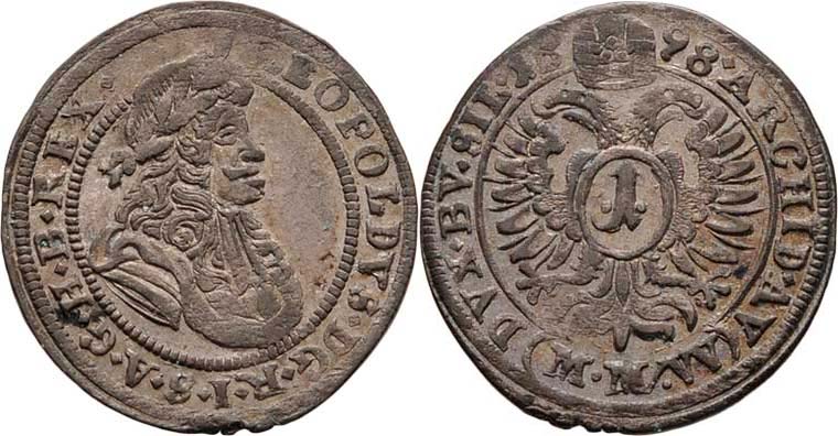 Krejcar 1698, Vratislav-Wackerl, Nech.764, MKČ.1639, 0.917g, nep.nedor., pěkná patina