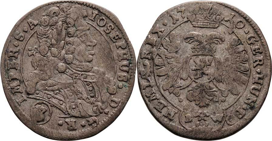 3 Krejcar 1710 BW, K.Hora-Wohnsiedler, MKČ.1731, J.3a, 1.673g, dr.vady razidla, nep.nedor., pěkná pat.