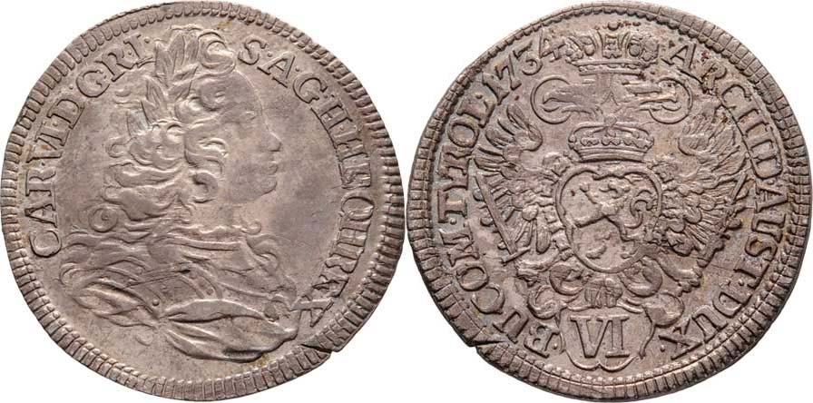 VI Krejcar 1734, Praha-Scharff, J.13, MKČ.1822, 3.283g, nep.vada mater. na hraně, pěkná patina