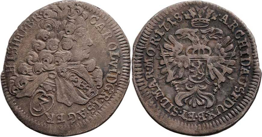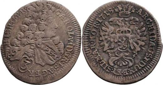 3 Krejcar 1718, Praha-Scharff, J.10a, MKČ.1832, 3 Krejcar 1718, Praha-Scharff, J.10b, MKČ.1833, 1.535g (-1/1- tmavá patina), 1.651g (1/1) 2ks