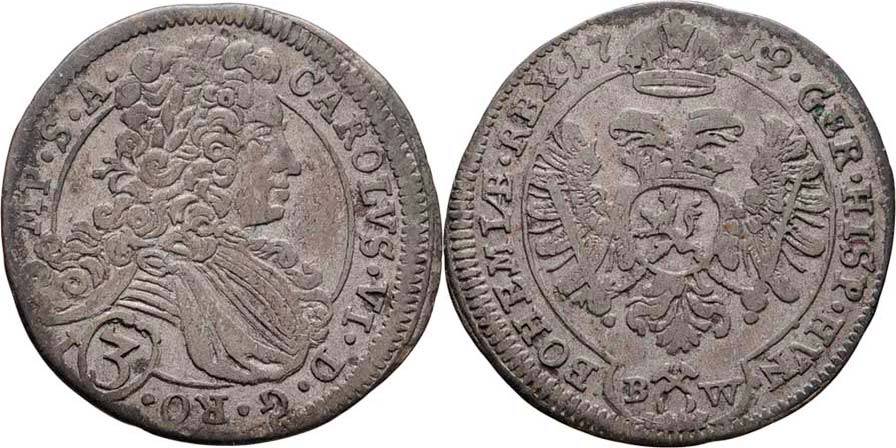 3 Krejcar 1712 BW, K.Hora-Wohnsiedler, MKČ.1865, J.5a, 1.660g, nep.nedor., pěkná patina