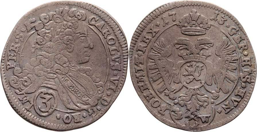3 Krejcar 1713 BW, K.Hora-Wohnsiedler, MKČ.1866, J.5b-1, 1.545g, pěkná patina, téměř