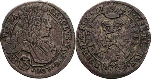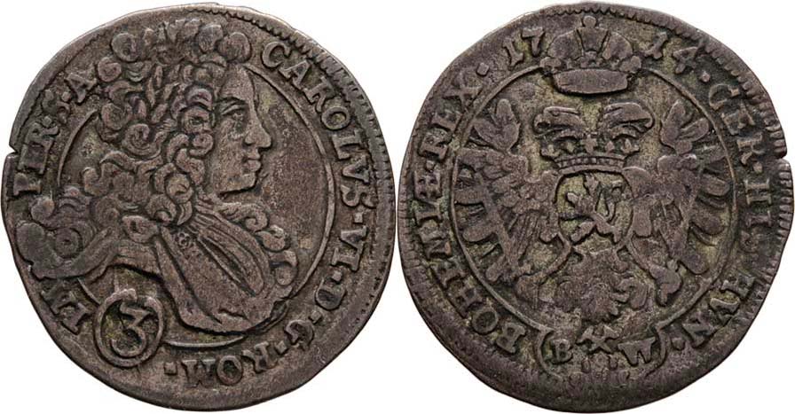 3 Krejcar 1714 BW, K.Hora-Wohnsiedler, MKČ.1866, J.5b1, 1.665g, tmavá patina