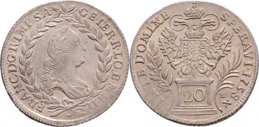 20 Krejcar 1758 P-R, Praha-Erdmann, N.8, MKČ.1989, 6.225g, mírně just., krásná patina, téměř