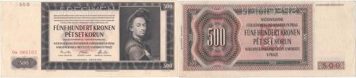 500 Koruna 1942 - 2.vyd.- sér. Ga, BHK.36, He.38a.s1, posun tisku k hornímu okraji "SPECIMEN"