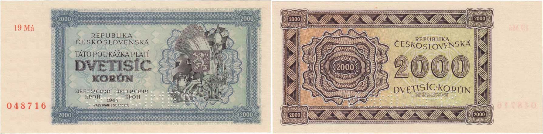 2000 Koruna 1945, série 19Má, BHK.69bA, Hej.74a2.s2 "SPECIMEN"