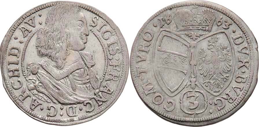 3 Krejcar 1663, Hall, M-A.162, 1.467g, pěkná patina